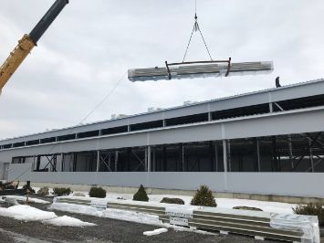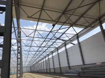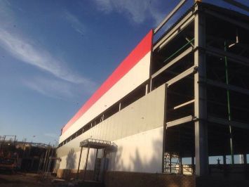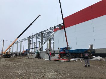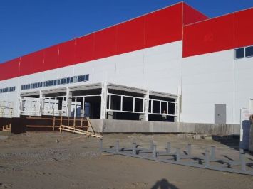 Дата заключения договора подряда – 2015 г. ТСП: 5 000м2. Выполняемые работы по объекту: Монтаж ограждающих конструкций стен и кровли. Состояние: объект сдан в эксплуатацию.